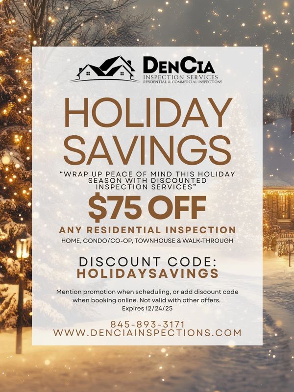 HOLIDAY SAVINGS - $75 OFF ANY RESIDENTIAL INSPECTION (EXPIRES 12/24/25)